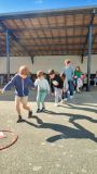 En équipe multi-âges, de la TPS au CM2, les enfants devaient reconstituer la carte de France et retrouver l'animal fétiche de chaque région... Pour se compliquer la tâche, il fallait se déplacer en équipe et en relevant des défis : montées de genoux, sauts de grenouille, slalom...